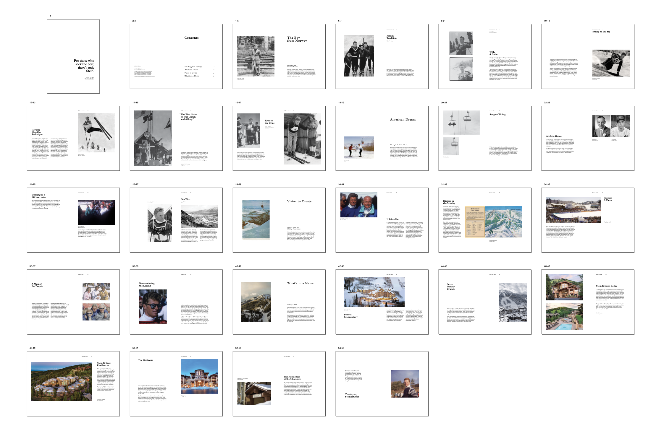 Stein Eriksen is an olympic ski legend who largely contributed to the foundation of Deer Valley Ski Resort in Park City, Utah. Not only did he help establish the resort as a whole, but continued to give back through his work as a ski instructor. Stein Eriksen is one of the faces behind the iconic spot, yet not everyone knows the impact he’s made or where it all came from. “Father of Freeskiing” is a booklet designed for the Stein Collection at Deer Valley, where guests from near and far have the opportunity to stay and experience luxury. The booklet gives guests the opportunity to discover the man behind the name, starting with life as a boy growing up in Norway to the legacy he left.